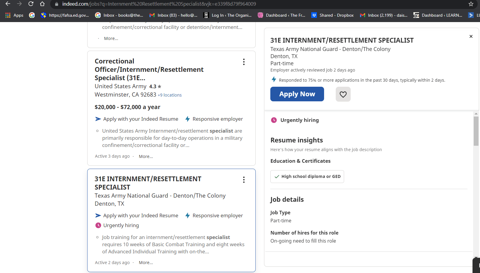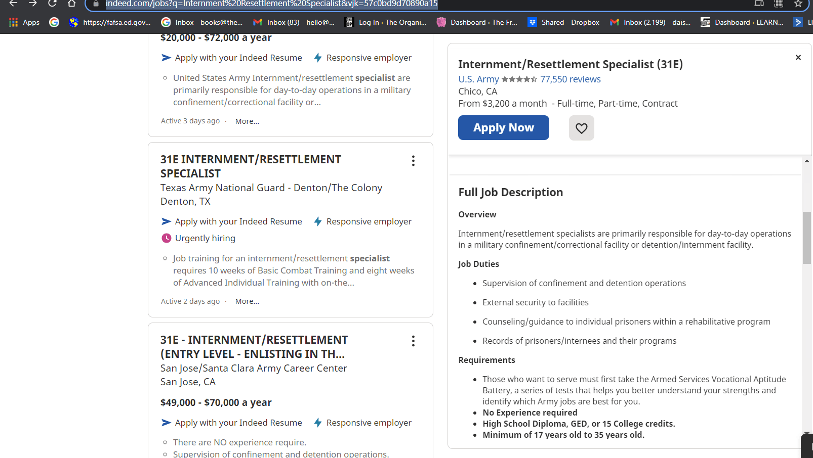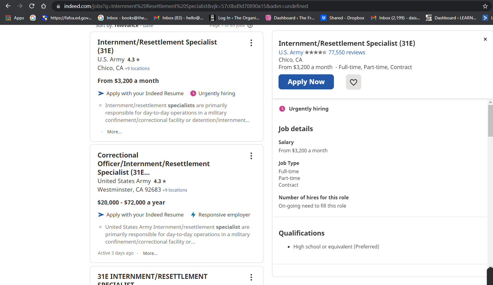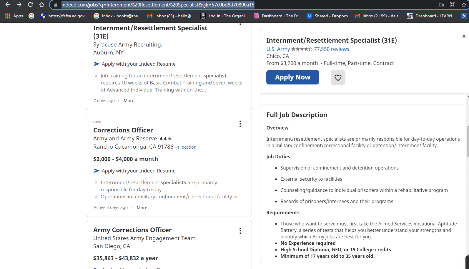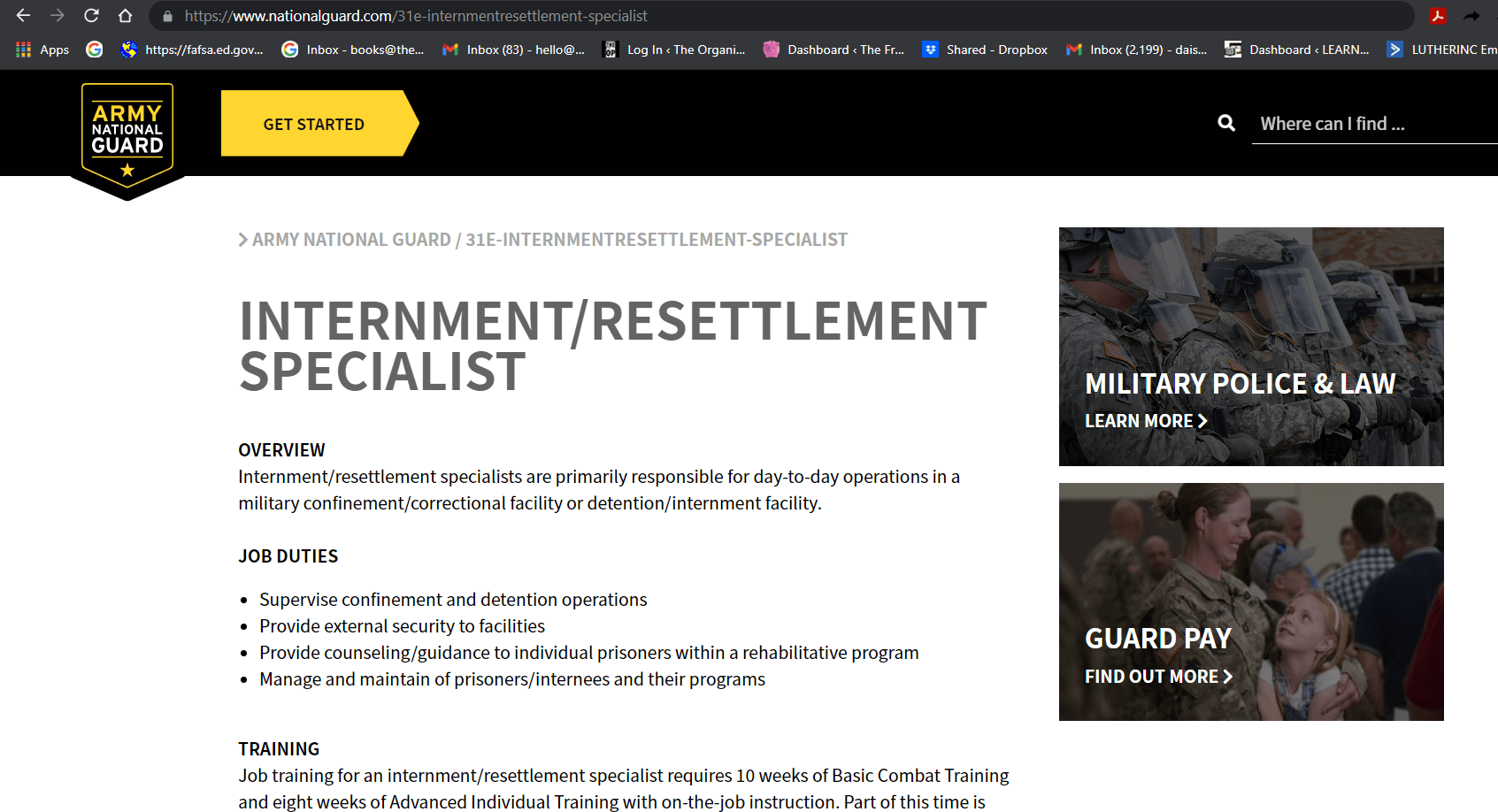 The National Guard is hiring Internment/Resettlement Specialists.
